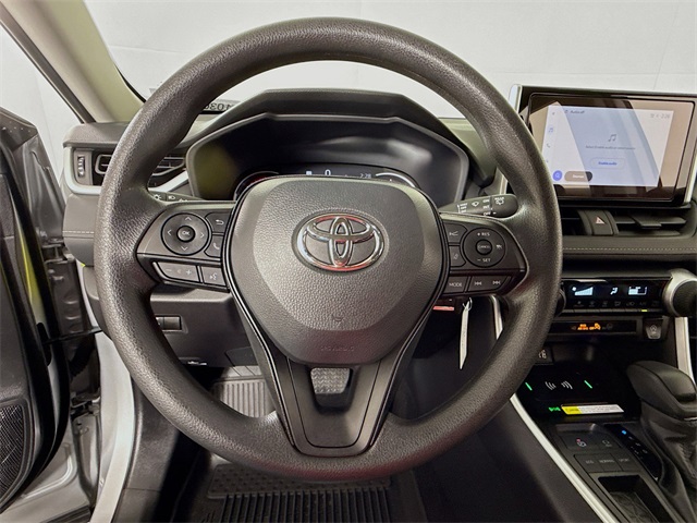 BLUETOOTH, REAR BACK UP CAMERA, APPLE/ANDROID CAR PLAY, LANE DEPARTURE WARNING, LOCAL TRADE, FRESH OIL CHANGE, CARFAX ONE OWNER VEHICLE, Black w/Fabric Seat Trim. Toyota 2025 RAV4 Silver Sky Metallic LE